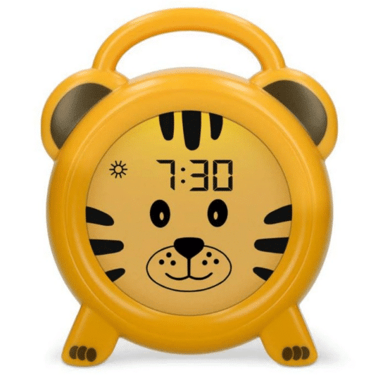 Deze handige nachtlampwekker werkt op een inventieve manier. Hij laat je kind automatisch wennen aan het moment om te slapen en ook wanneer je kind mag opstaan. Als ouder stel je eenmalig de slaaptijd en de wektijd in. Bij slaaptijd kleurt het display blauw en het tijger doet zijn ogen dicht. Vanaf de wektijd kleurt het display oranje en opent het tijger zijn ogen. Je kind weet meteen wanneer het tijd is om te slapen, of tijd is om op te staan door middel van de kleuren op de klok. Ook wanneer je kindje een keertje te vroeg wakker wordt, weet het dat het nog even in bed moet blijven liggen. Dit komt natuurlijk de nachtrust van papa en mama zeer ten goede!