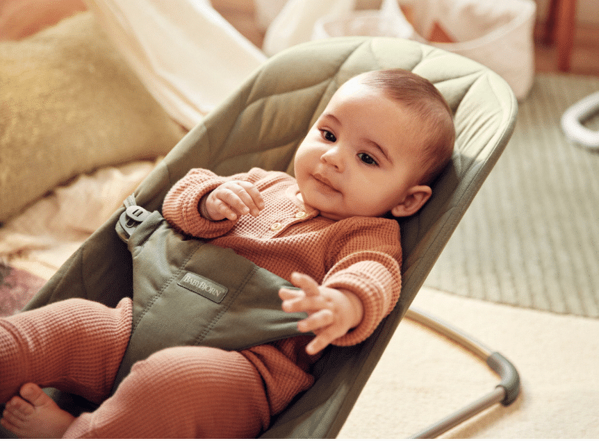 BabyBjörn – Wipstoeltje Bliss – Geweven Kroonblad quilt Donkergroen