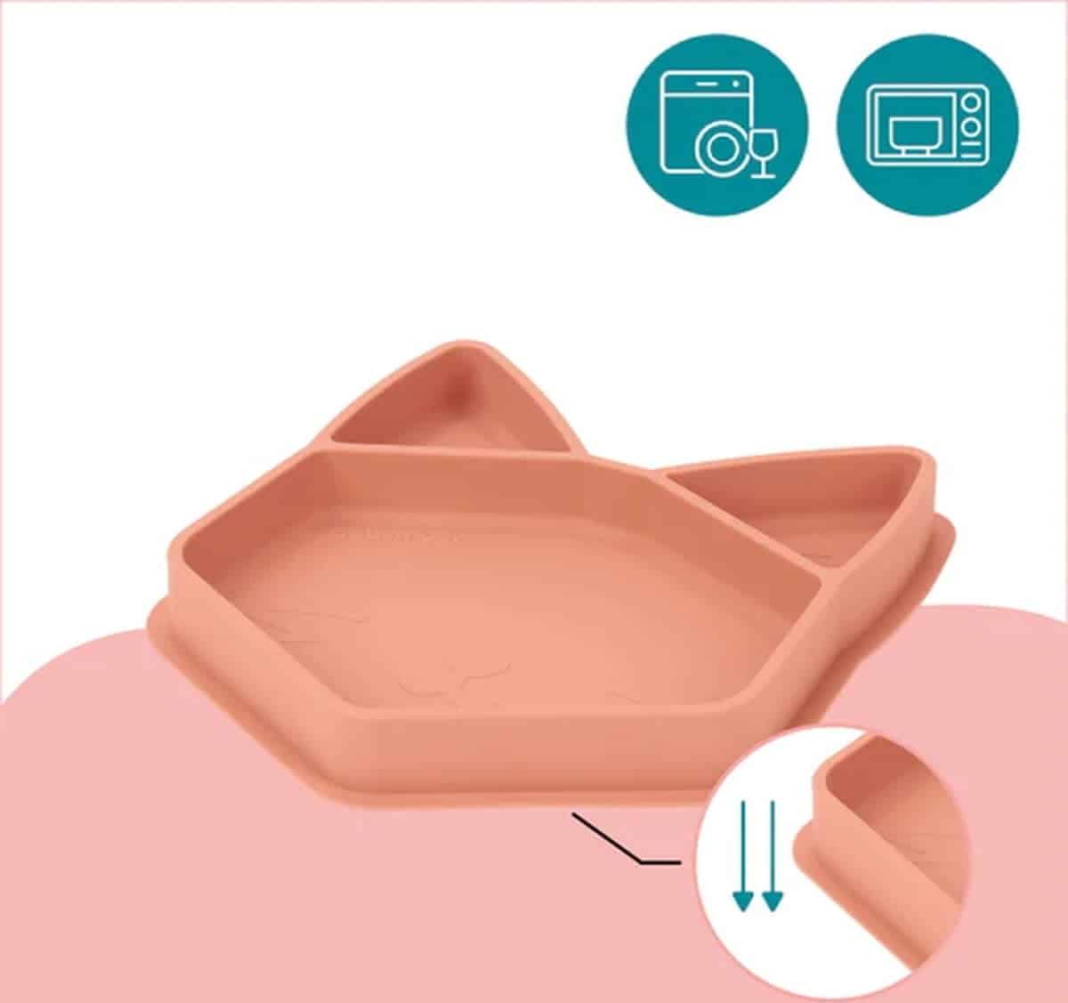 • Antislip: dankzij het siliconen materiaal hecht hij aan de tafel en de meeste planken van kinderstoelen. Zo beperk je het risico dat je baby omvalt of het bord weggooit.