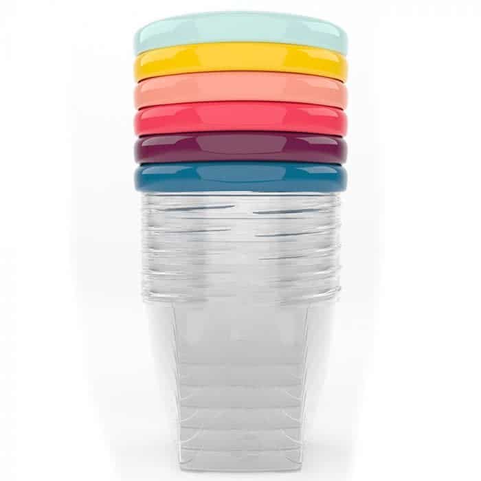 - Zichtbare schaal (in ml) en herschrijfbaar oppervlak op het deksel