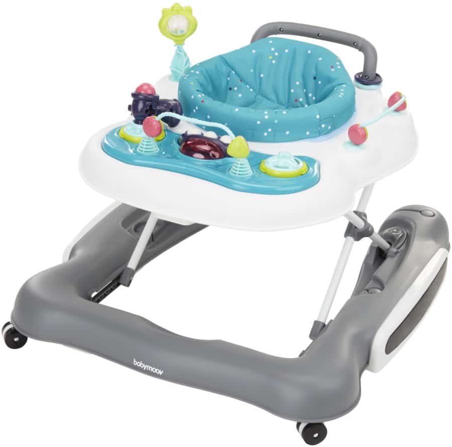- 5-in-1: Loopstoeltje (tot 12 kg), duwwagen, schommel, 360° zitje & spelconsole