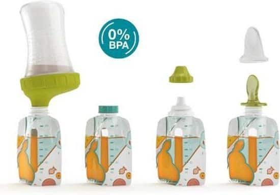 - 1 Squeeze™ lepel in siliconen en 2 opschroefbare mondstukken Snack Spout™