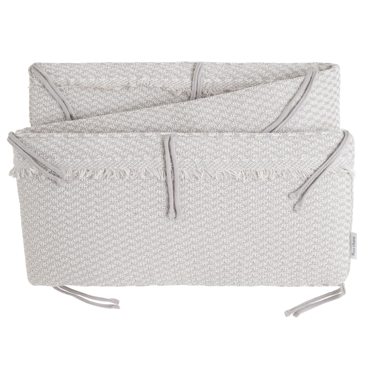 Ontdek de Bed/boxbumper Happiness, een stijlvolle en functionele toevoeging aan de babykamer. Deze gebreide bumper heeft twee kleuren die zorgen voor een speels en trendy effect, en is ontworpen in een formaat van 30×180 cm, waardoor hij perfect past in zowel de speelbox als het ledikant.Gemaakt van een mix van 50% katoen en 50% acryl, biedt deze bumper zowel zachtheid als duurzaamheid. De Bed/boxbumper is eenvoudig te bevestigen met koordjes, waardoor hij stevig op zijn plaats blijft en optimale bescherming biedt aan je kleintje.Combineer de bumper met een matchende Happiness boxkleed voor een complete en modieuze uitstraling. Verkrijgbaar in verschillende kleuren, past de Bed/boxbumper Happiness bij elke interieurstijl en zorgt hij voor een veilige en gezellige omgeving voor je baby.