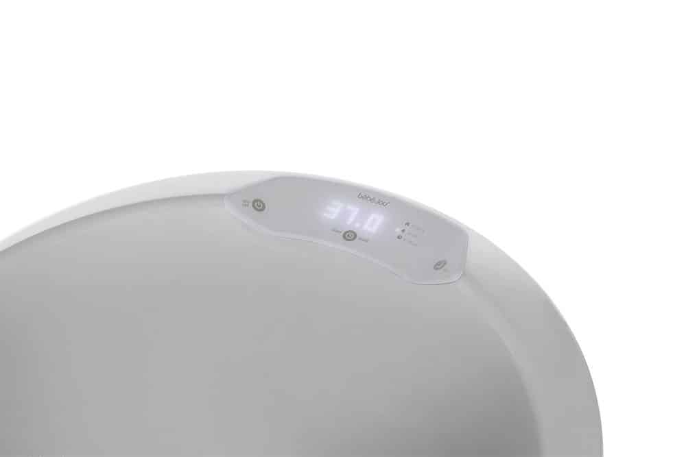 De Sense Edition bevat een innovatieve digitale thermometer. In het badstopje zit een geïntegreerd systeem waarmee zowel de watertemperatuur als de kamertemperatuur wordt gemeten. Zo kun je je kleintje altijd veilig en op de juiste temperatuur laten genieten, waar het badje ook staat. Via een draadloze verbinding wordt de informatie weergeven op de digitale module. De mooi uitgevoerde en handige led-module met touch-oppervlak is voorzien van een timer die je op 10 minuten kunt instellen. Zo kun je lekker badderen, zonder datje baby te lang in het water ligt en de huid niet uitdroogt.
