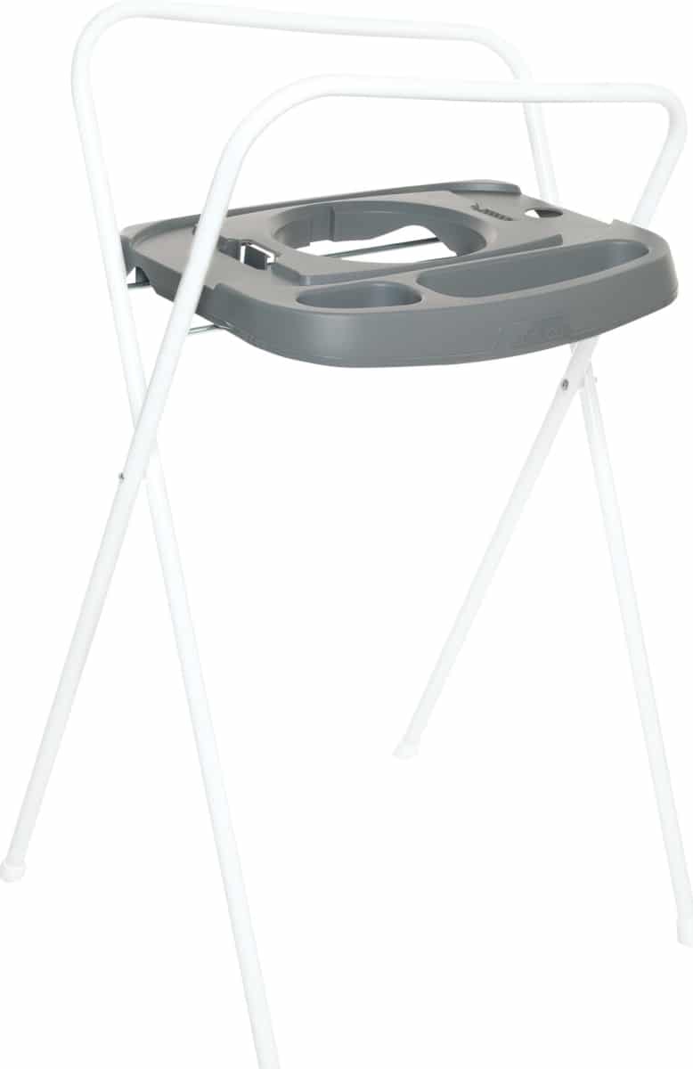 De bébé-jou inklapbare badstandaard is uitgerust met een speciaal CLICK systeem. Met behulp van dit innovatieve systeem plaats je het bébé-jou babybad CLICK en thermobad CLICK heel eenvoudig, met 2 kliks,muurvast op de standaard. Net zo gemakkelijk klik je de badjes weer los, door aan de onderzijde van de badstandaard het systeem in te knijpen. Heel handig, ook de bébé-bubble (bademmer) is geschikt voor deze badstandaard. Kortom je hebt maar één standaard nodig waarop je een bademmer, maar later ook een badje kan plaatsen. Natuurlijk is eengoede houding erg belangrijk tijdens het badderen en ook wil je alles bij de hand hebben. De badstandaard is daarom uitgerust met een handdoekenrek en verkrijgbaar in twee verschillende hoogtes: 98cm en 103cm.