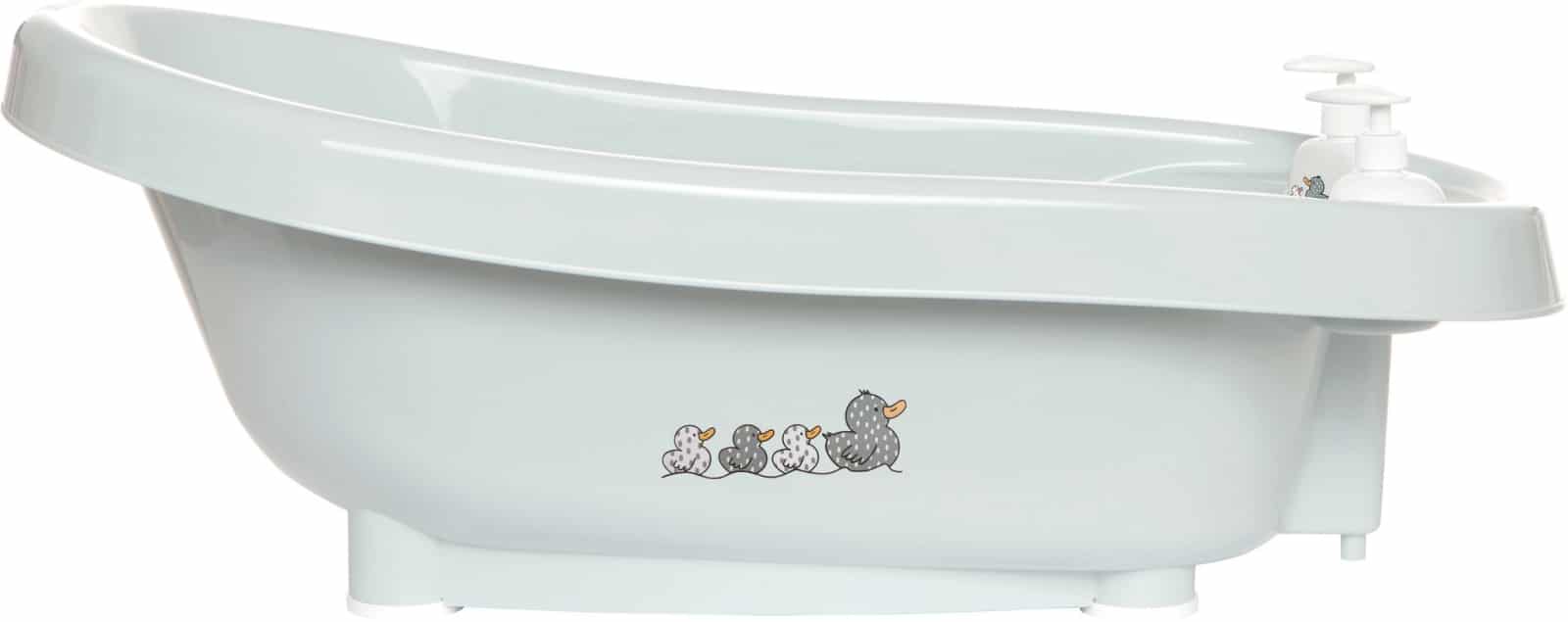 Met het bébé-jou thermobad met innovatief “CLICK systeem” kies je voorveiligheid en extra comfort tijdens het baden. Met behulp van dit innovatieve systeem plaats je het bad heel eenvoudig, “met 2 clicks” muurvast op de bébé-jou badstandaard 2200 of 2205. Net zo gemakkelijk “click” je het bad weer los door aan de onderzijde van de badstandaardhet systeem in te knijpen. Ook heeft dit speciale babybad een geïntegreerde badthermometer en twee dispensers voor shampoo en zeep. Kortom een luxe bad met alles erop en eraan, zodat jij, je tijdens hetbaden optimaal op je kindje kan concentreren. De badthermometer dient ook als afvoerstop. Wanneer je deze omhoog duwt loopt het water er viade meegeleverde badslang langzaam uit in b.v. de bébé-jou luieremmer. Op deze manier is zwaar tillen overbodig.