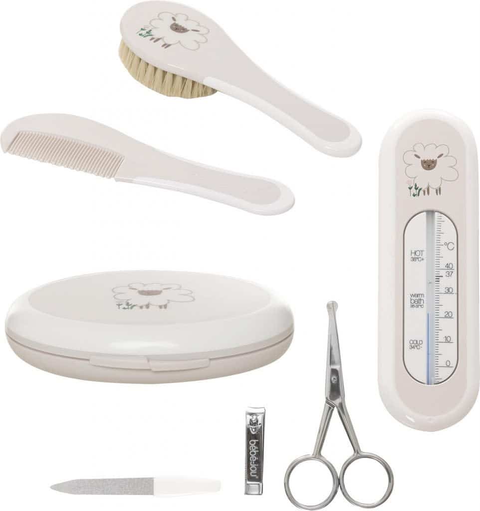 Een praktische verzorgingsset van bébé-jou om toekomstige ouders kado te geven. In deze set zit een kapset, manicureset en een badthermometer. Drie basisproducten die je nodig hebt voor een goede verzorging van je pasgeboren kindje.