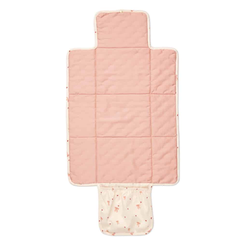 Cute and practical changing mat with beautiful wave quilt pattern – the mat is perfect for changing situations on the go. The mat is easily folded with one hand to a handy small size, that fits into the nursery/diaper bag. It has a practical pocket inside that fits a diaper and a muslin. The mat is coated on the outside to make it dirt and water repellent.