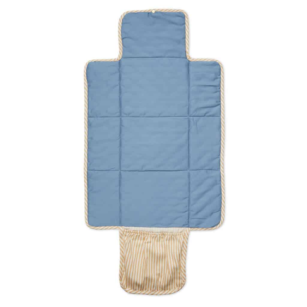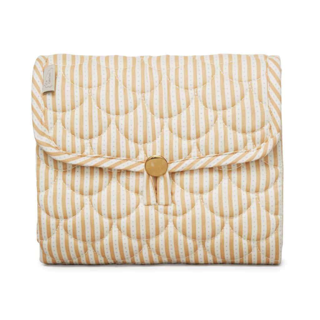 Cute and practical changing mat with beautiful wave quilt pattern – the mat is perfect for changing situations on the go. The mat is easily folded with one hand to a handy small size, that fits into the nursery/diaper bag. It has a practical pocket inside that fits a diaper and a muslin. The mat is coated on the outside to make it dirt and water repellent.