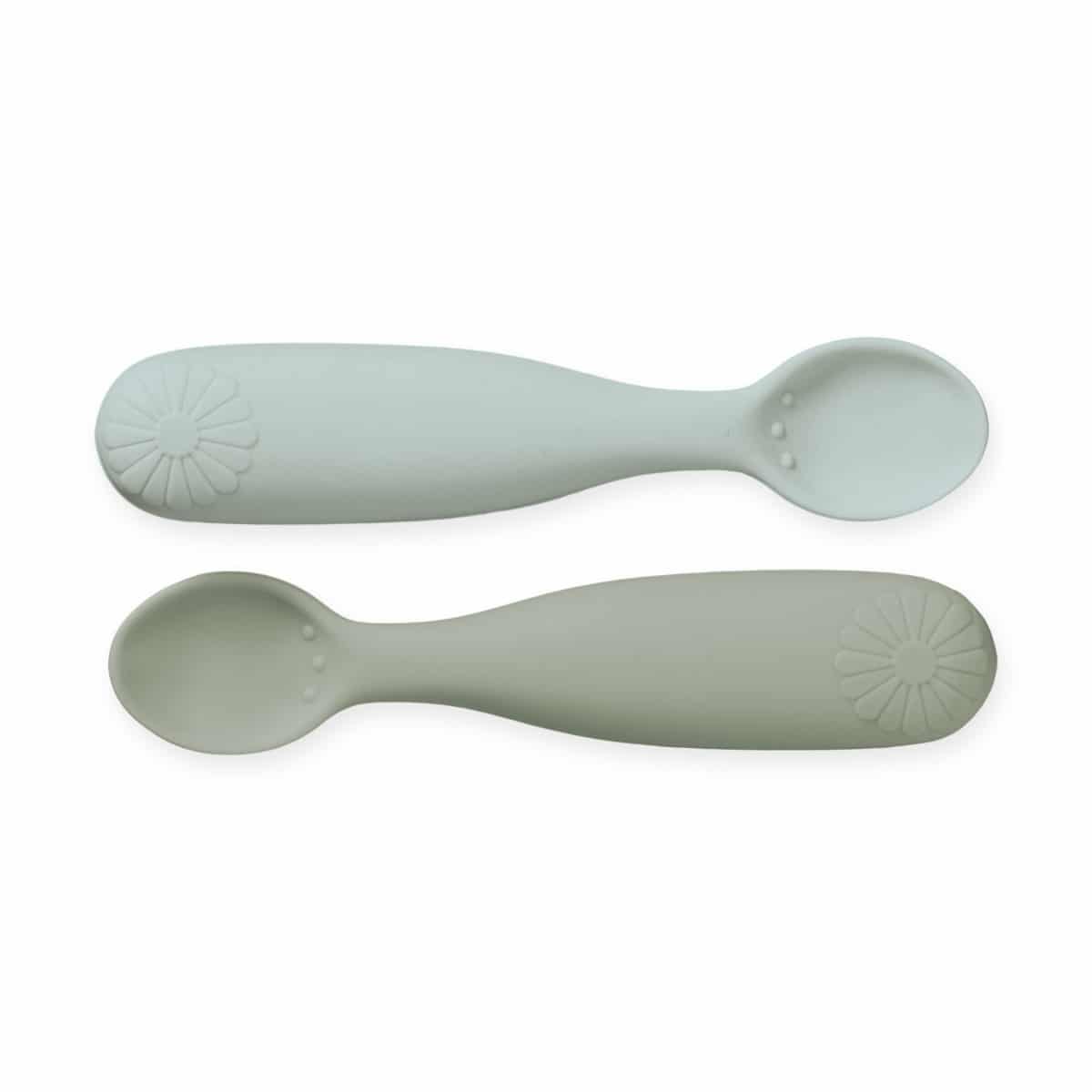 Set of two pretty and practical Silicone Spoons designed with a beautiful flower embellishment allowing the little one(s) to dine in style.