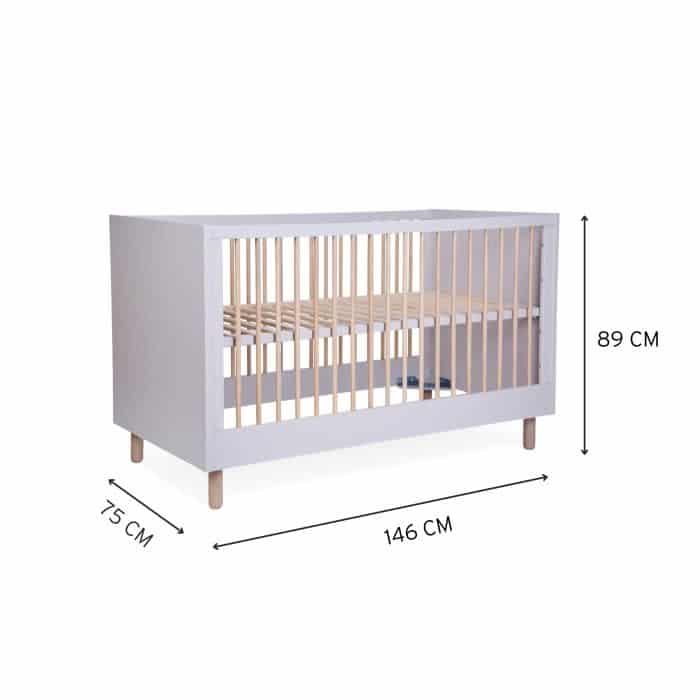 Dit bed groeit mee met je kind en kan eenvoudig worden omgevormd van babybed naar peuterbed. Met afmetingen die comfort en ruimtebesparing combineren, is het perfect geschikt voor zowel kleine als grote kamers.