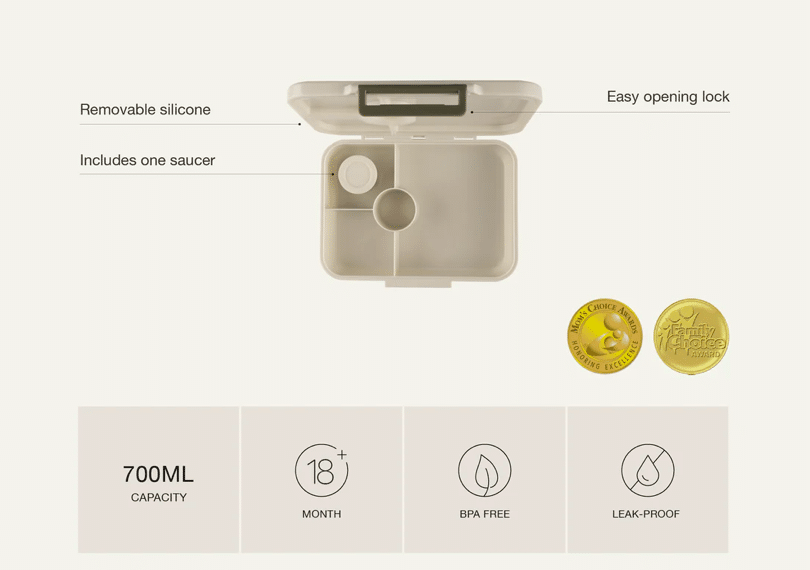 Grand Lunchbox with 1 insulated food jar 4 compartments and Leak Proof – Surprise inside: 20ml Saucer cup Leak proof