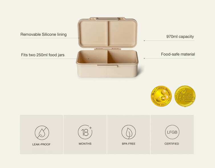 Easy storage for 2 (250ml) Food Jars/ Flammable/ Food Safe/ Recycle/ BPA free/ Does not contain any Toxic material.