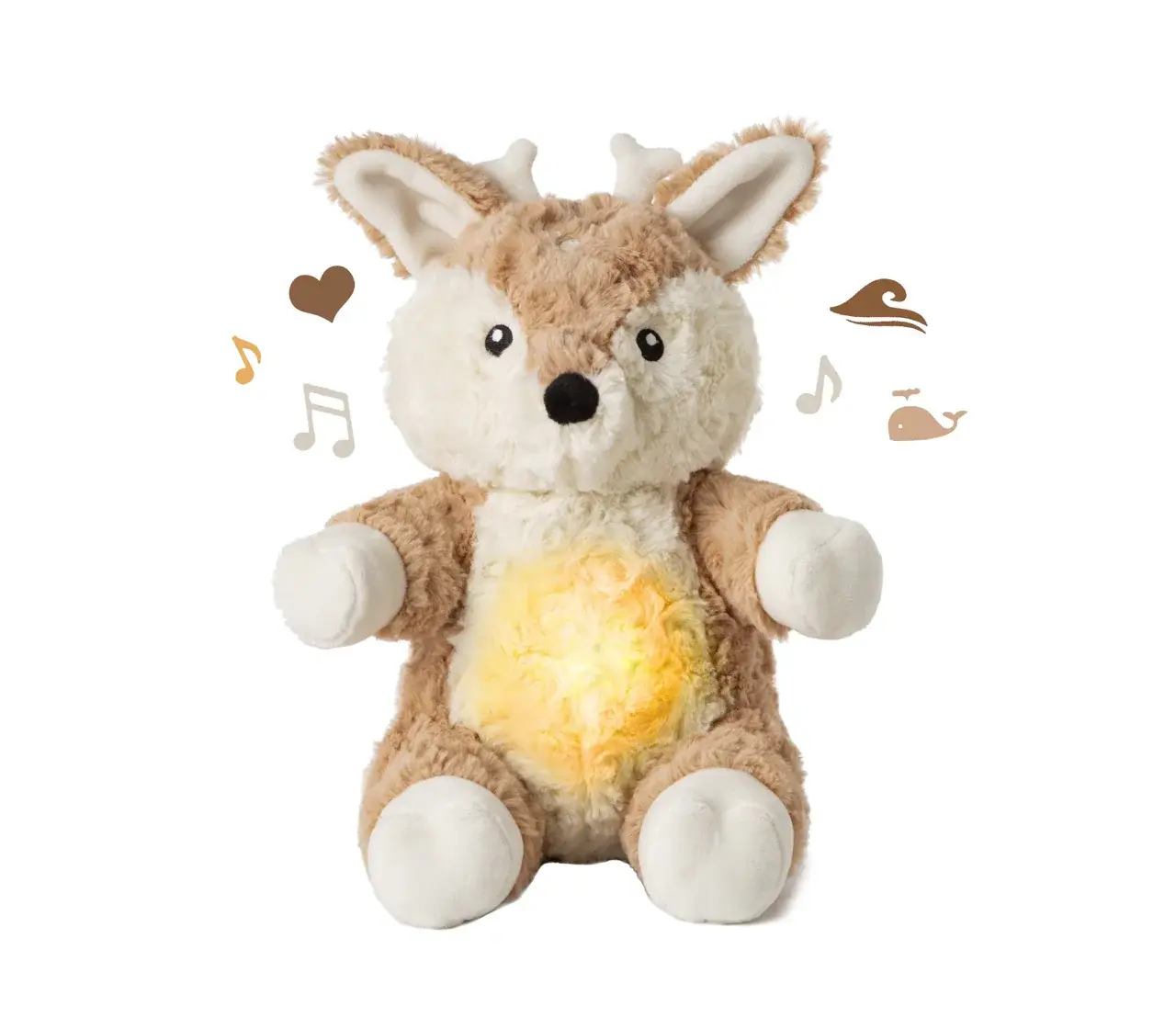 4 rustgevende geluiden en 4 melodieën. Stemopname. 5 kleuren en 2 lichteffecten. Shake & Play bewegingsdetector. Afneembare clip. Oplader inbegrepen. Oplaadbare batterij (usbc).