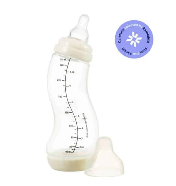 De Difrax S-fles Natural 250 ml is de populairste babyfles voor baby, papa en mama. Het speciale anti-darmkrampjes ventiel en de S-vorm zorgen voor een constante stroom van flesvoeding. De S-fles Anti-colic is vanaf de geboorte te gebruiken en ideaal in combinatie met borstvoeding.