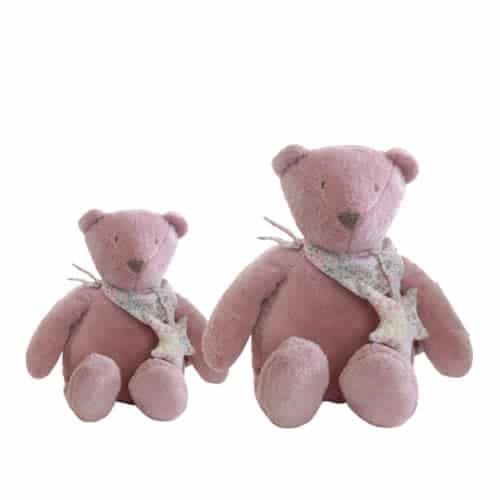 Beer knuffeldier afgewerkt met sjaaltje en ster in een zacht katoenen stof in liberty print.