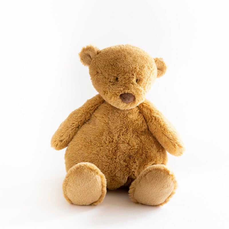 Floppy beer knuffeldier met een zachte buik te gebruiken als knuffel.
