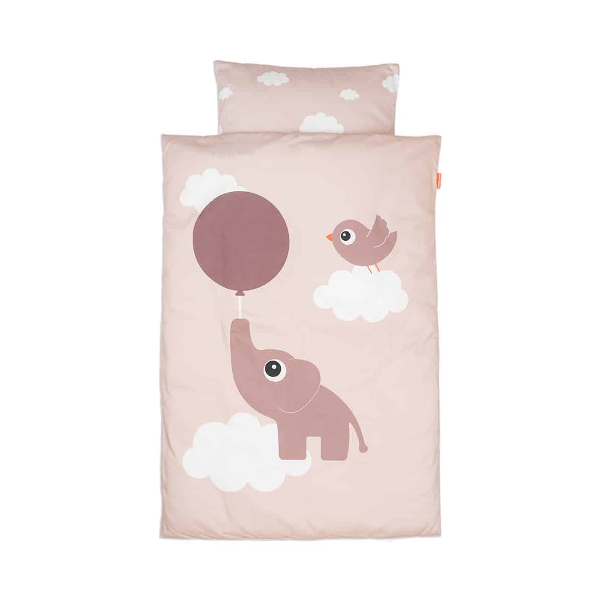 • Soft powder coloured junior bedlinen decorated with the Deer friends Elphee and Birdee, ballons and clouds