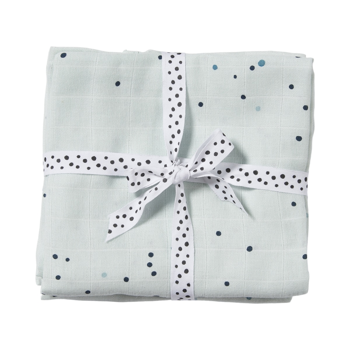 A set of two soft muslin burp cloths in pastel blue sprinkled with Dreamy dots. The burp cloths are perfect when mummy or daddy changes nappies or when it is time for a burp after feeding.