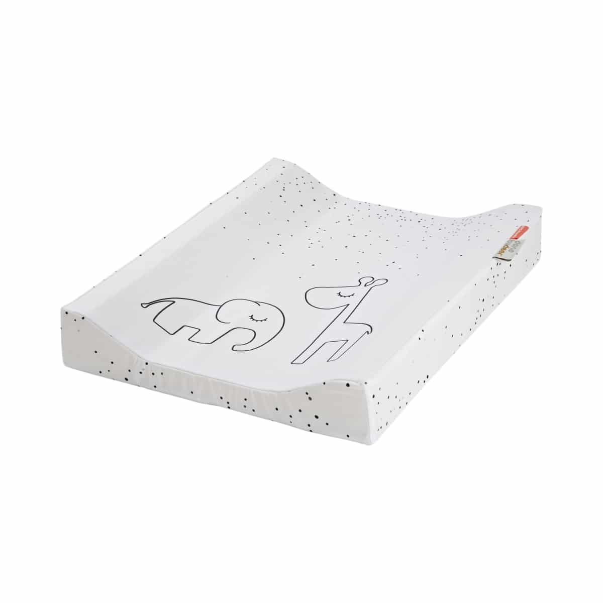 Let your sleepy friends Elphee and Raffi keep you company while mummy or daddy changes your diaper. The monchrome changing pad sprinkled with Dreamy dots has a soft Oeko-tex coating which makes it water repellent and easy to wipe clean.