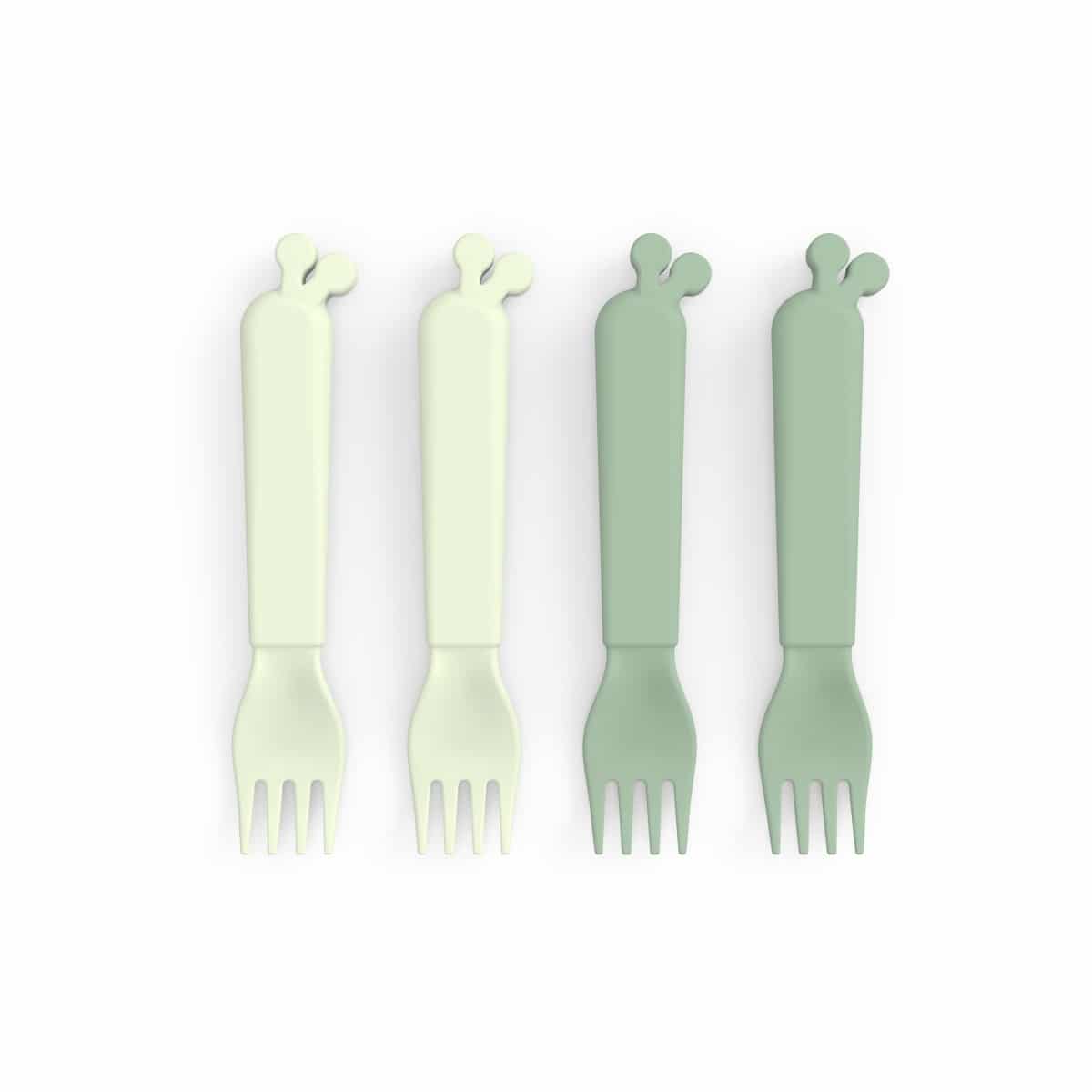 Toddlers will need lots of forks when practising the difficult task of eating by themselves without dropping the fork immediately after! With this pack of 4 Kiddish forks it will become much easier. Durable childrens’ forks for the everyday meals. The Kiddish childrens’ forks are sustainable and made in Denmark. When the forks are worn out they can be sorted as hard plastic and recycled to produce new products for everyday life. A practical 4-pack of Kiddish forks in two shades of green. The forks have an exclusive matt silky surface and fit perfectly with the rest of the Kiddish collection.