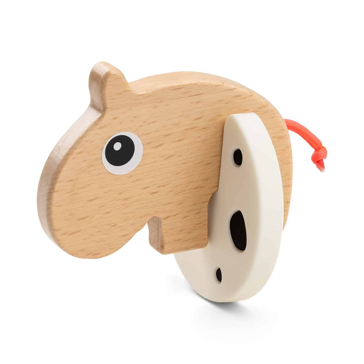 • Cute Ozzo figure in wood and nice stimulating contrasting colours on silicone and string tale
