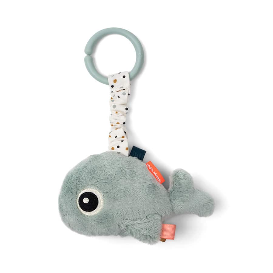 Bring Wally along every time you go on adventures. The mighty whale is up for a whale of a time every day and loves to rattle too. Little hands can easily hold on to Wally and the toy link makes it easy to attach Wally to e.g. the pram, stroller or playpen. The super soft Sea friend is a blue tone with details of golden dots and colourful tags.