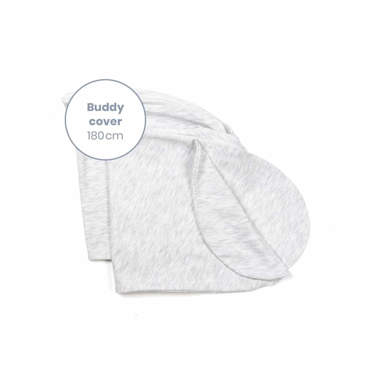 Doomoo buddy is 180 cm (afmetingen genomen vanaf de buitenkant van het kussen wanneer het kussen in een hoefijzervorm is geplaatst). De buddy is gemaakt van bi-elastisch materiaal (rekt gemakkelijk uit).