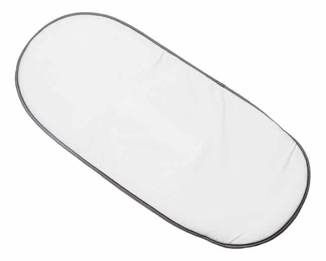 Verwijder de veiligheidsgordel van de Cocoon en plaats de extra pad op het matrasje van de Cocoon: De velcro in het midden van het matrasje van de Cocoon hecht zich perfect aan de achterkant van de extra pad.De 2 velcrostrookjes aan de bovenkant van de nieuwe versie van de Cocoon maak je zo vast aan de twee kleine velcrostrookjes aan de achterkant van de extra pad.Trek de beschermer achter en onder aan de extra pad over het onderste gedeelte van de matras van de Cocoon. Plaats de verwijderbare gordel op de extra pad en je babynestje is klaar. Voor extra veiligheid kan je de gordel ook sluiten.