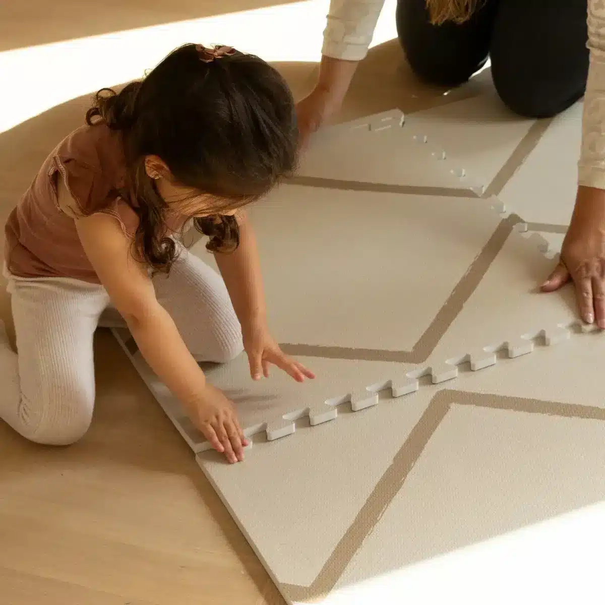 De hoogwaardige Eeveve speelmat is ideaal voor alle fases van je kind. Denk aan het oefenen van tummy time, leren rollen, zitten en kruipen, tot aan veilige ondergrond voor onder speelringen of een glijbaan. Door de prachtige designs van de speelmatten zijn ze een echte toevoeging aan je interieur! De Speelmat is ook gemakkelijk op te bergen omdat deze uit puzzelstukken bestaat. Is geschikt om te gebruiken op vloerverwarming.