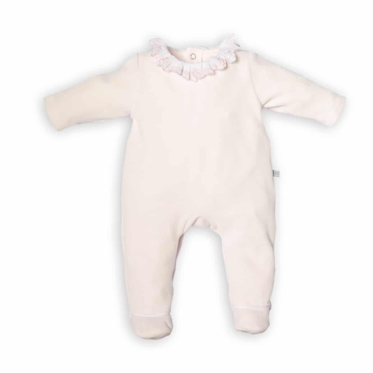 First – BO G velvet rompersuit froufrou collar- blush pink