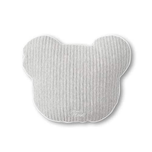 “First” berekop kussen in grijs gemattelasseerde jersey met witte biesje