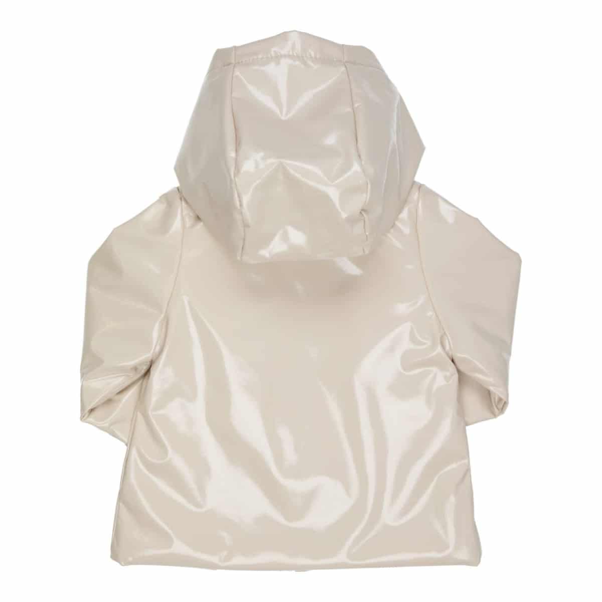 Een stijlvolle regenjas met glossy finish. Waterafstotend, warm gevoerd en met een handige capuchon. De zilverkleurige rits geeft ’m een frisse, moderne look. Perfect voor regenachtige dagen, én makkelijk te combineren. Gemaakt uit waterafstotend laqué stofje.