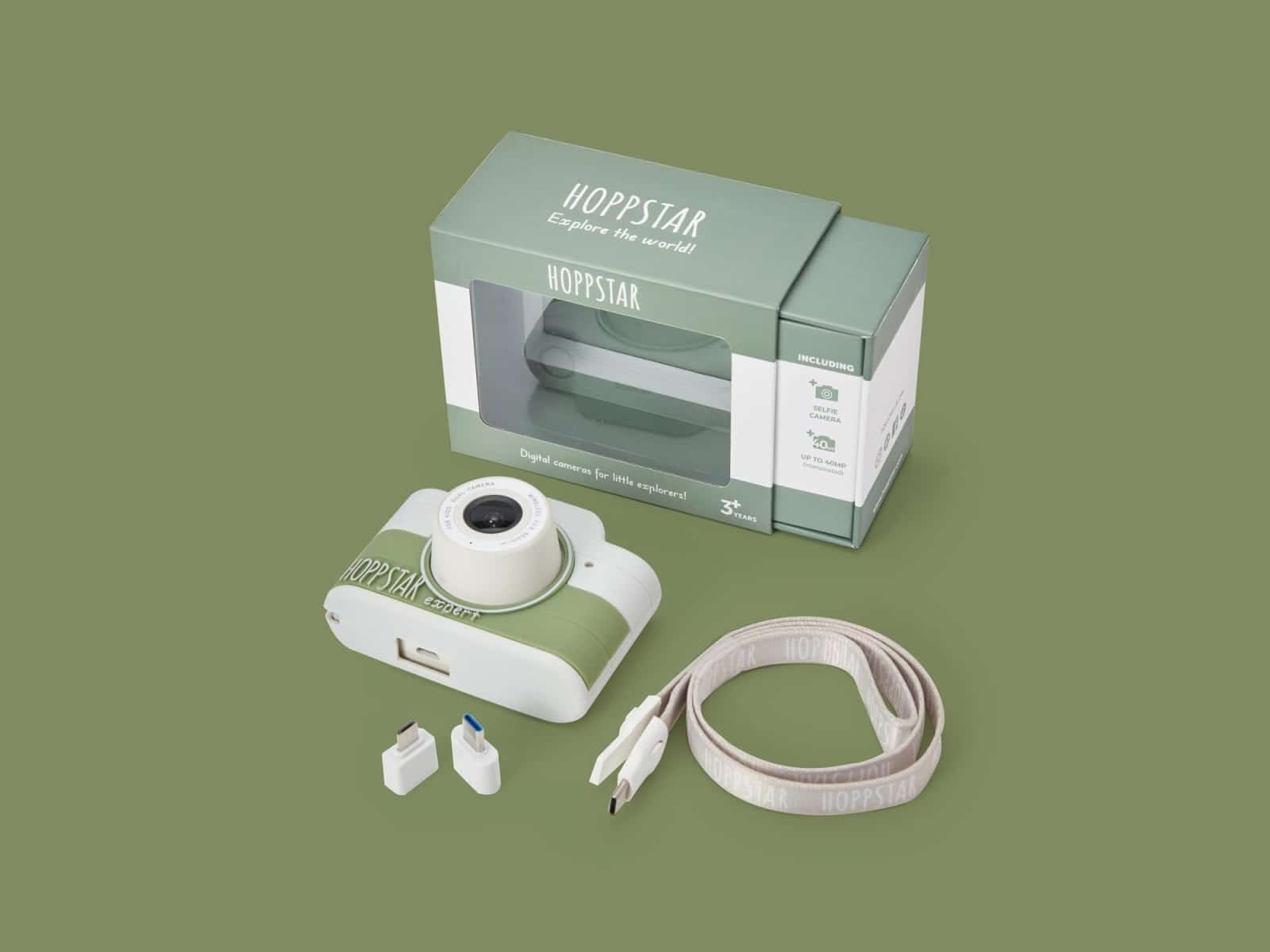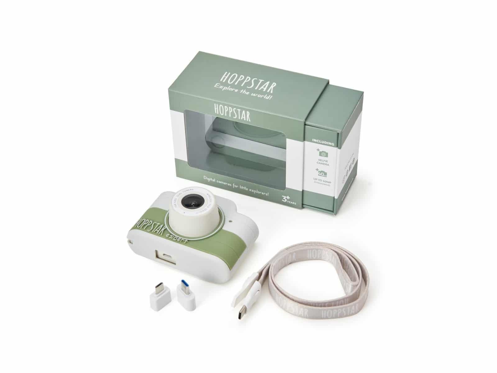 Hoppstar Expert – met retro-design én in prachtige pastelkleuren – is het ideale fototoestel voor kleine ontdekkingsreizigers. Deze kindercamera is voorzien van tal van handige functies, zoals een extra selfiecamera aan de achterkant, 32GB opslagruimte én een videocamerafunctie.