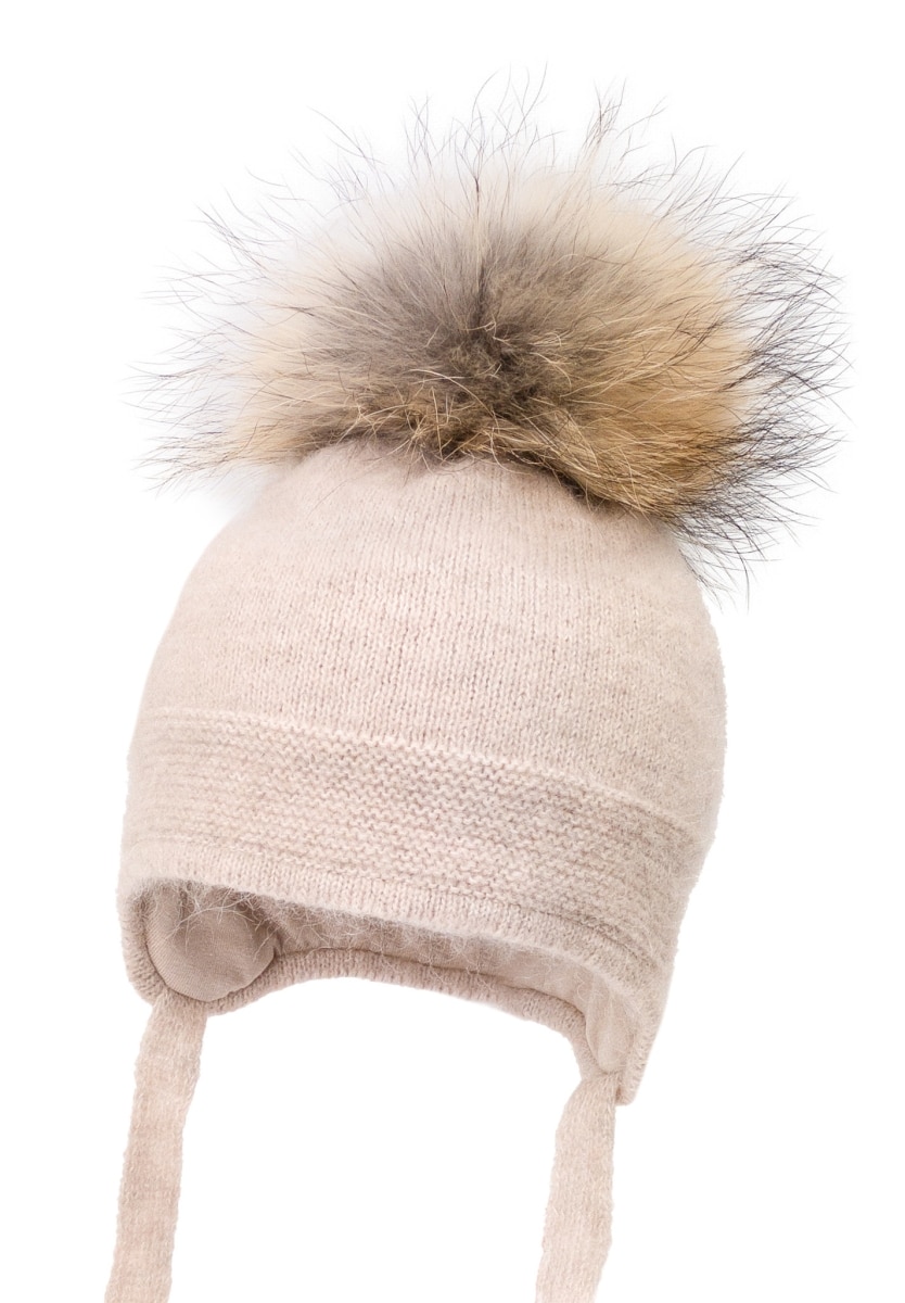 TOP: 50%alpaca, 50%polyamide Lining: 95%cotton, 5%elastane Pompon: raccoon fur