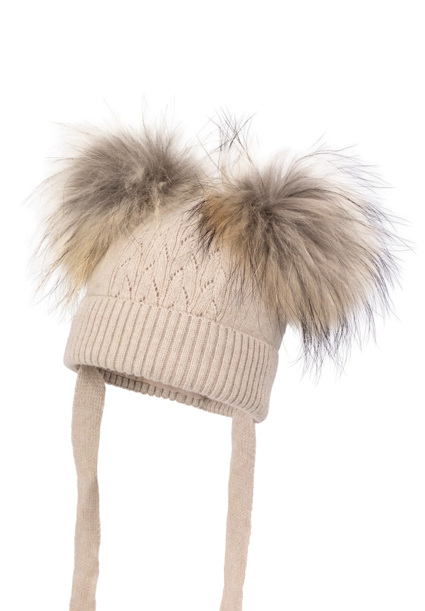 TOP: 35%polyamide, 30%wool, 30%viscose, 5%cashmere Lining: 95%cotton, 5%elastane Pompon: raccoon fur