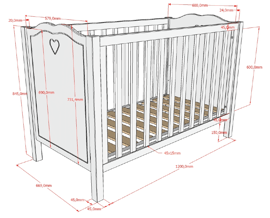 Het babybed (60 x 120 cm) in wit uit de AMORI collectie combineert een tijdloos, fris design met zachte, romantische accenten. Het is de favoriete kamer van iedereen die houdt van elegante meubels. De lattenbodem is inclusief en kan op 3 hoogtes versteld worden voor optimaal gebruiksgemak. Laat je verleiden door de charme van deze babykamer met hartjesdetail. Een liefdevol welkom.