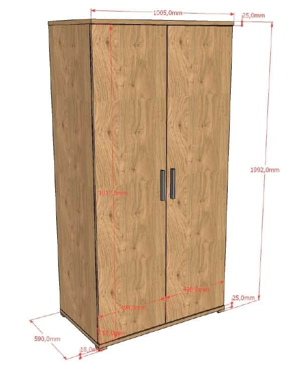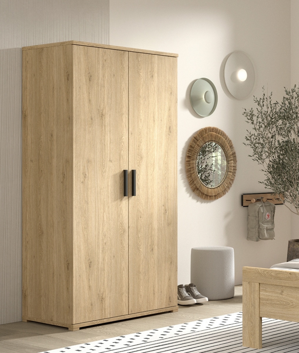 De 2-deurs kleerkast van de veelzijdige SAM collectie is de perfecte oplossing voor iedereen die op zoek is naar modern, stijlvol en praktisch meubilair. Met een warme houtlook, zwarte metalen handgrepen en minimalistisch design is deze kleerkast ideaal voor zowel kinderen als jongeren. Gemaakt van duurzame materialen die tegen een stootje kunnen, zodat het jarenlang meegaat. De kast biedt voldoende opbergruimte en bestaat uit 2 legplanken en een kledingrail.