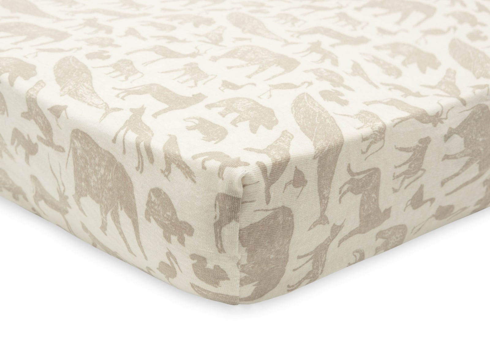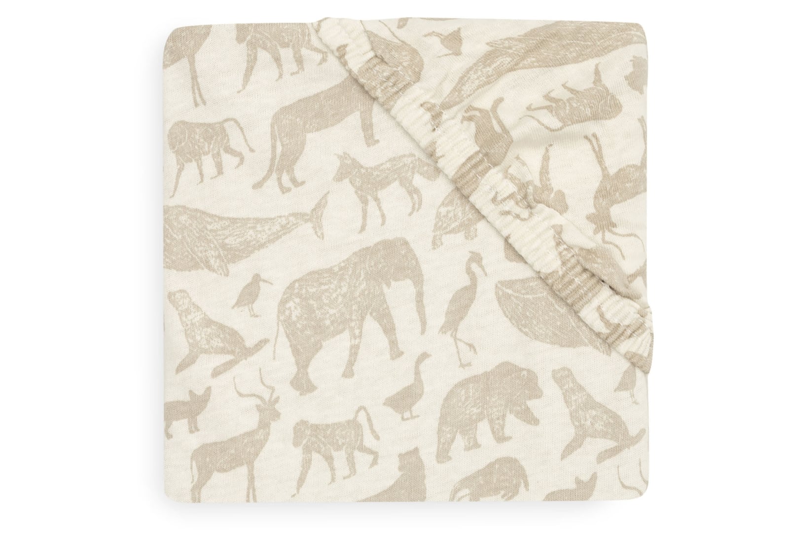 Jollein – Hoeslaken Jersey 70×140/75x150cm Animals Nougat