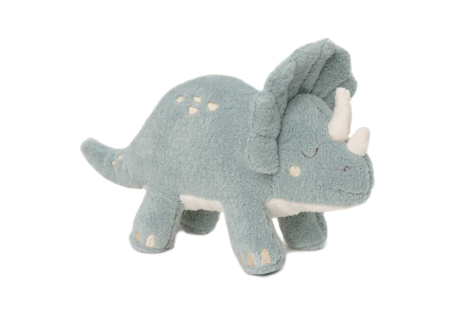 Wauw, welke stoere avonturier moet deze Dino echt bij zijn/haar collectie toevoegen? Deze Dino komt in een prachtig grijs blauw kleurtje met Ivory kleurige vlekjes en is heerlijk aaibaar. Je mini zal zich vast ook urenlang vermaken met deze leuke knuffel, want de oortjes zijn voorzien van een krinkel geluid! De knuffel heeft een extra tag mét palmboompje en dat maakt de knuffel natuurlijk nog interessanter. Maak thuis je eigen Jurassic Park met deze veel te lieve dino!