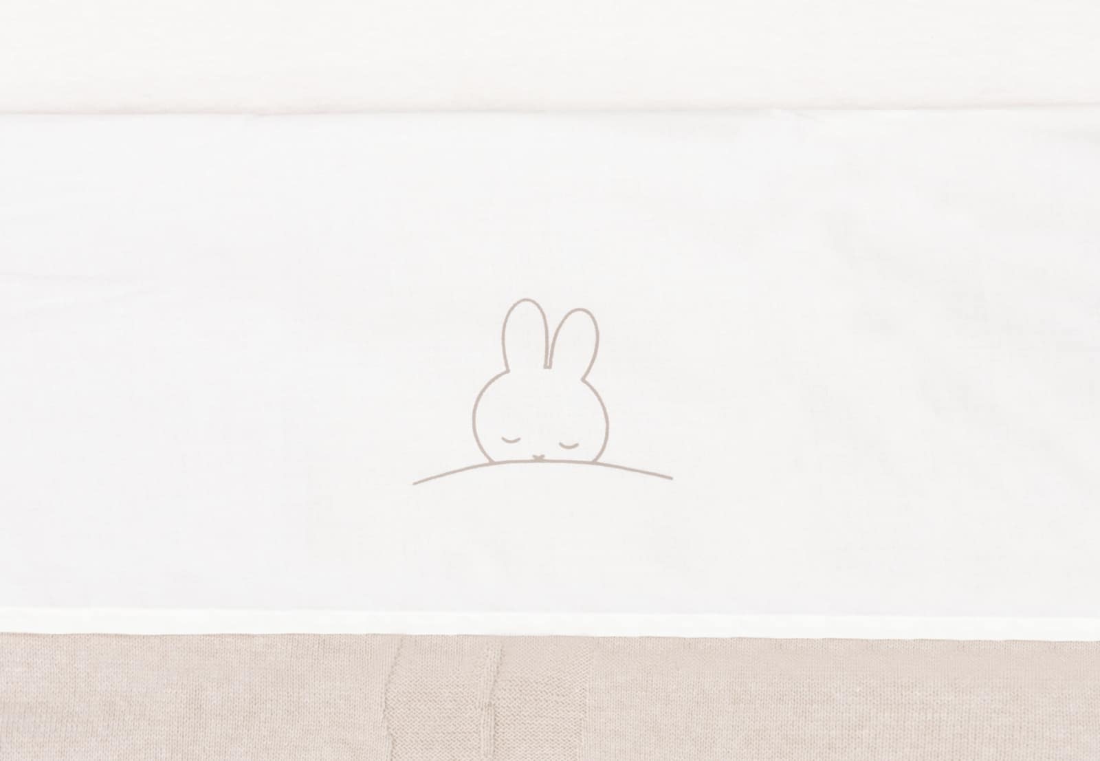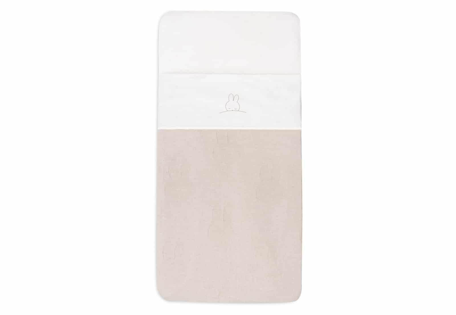 Het lakentje is ivory met een cute slapend Nijntje aan de bovenkant. De boord sla je om de deken heen ter bescherming en het staat ook nog eens erg leuk.