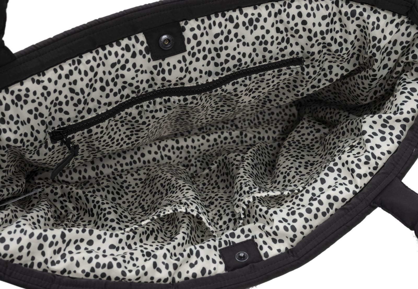 De perfecte puffed mom bag! Deze tas is ideaal als je op pad gaat met jouw kleintje. Natuurlijk kun je de tas ook gebruiken voor jezelf, voor het sporten of als schooltas. De tas is gemaakt van 100% gerecycled polyester. De binnenkant heeft aan de binnenkant een schattig stippenprintje. Daarnaast heb je in de binnenkant nog 2 handige opbergvakjes en wordt er standaard een verschoonmatje bijgeleverd. De tas sluit met een knoopje en er zit een rits in het binnenvakje. De shopper heeft extra lange hengsels zodat je deze niet alleen op je schouder kan dragen, maar ook cross-body of om de kinderwagen