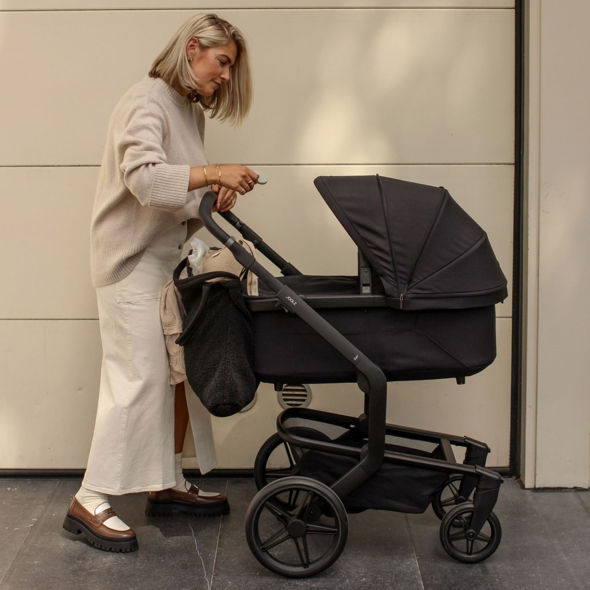 Met de slimme lussen bevestig je de Mom bag moeiteloos aan je Joolz kinderwagen, voor handsfree gemak en snelle toegang tot je essentials.