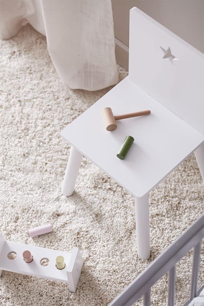 Deze leuke houten stoel is een toevoeging aan elke kinderkamer! De stoel heeft stevige schuine poten waardoor hij erg stabiel is en daardoor ideaal voor jonge kinderen.
