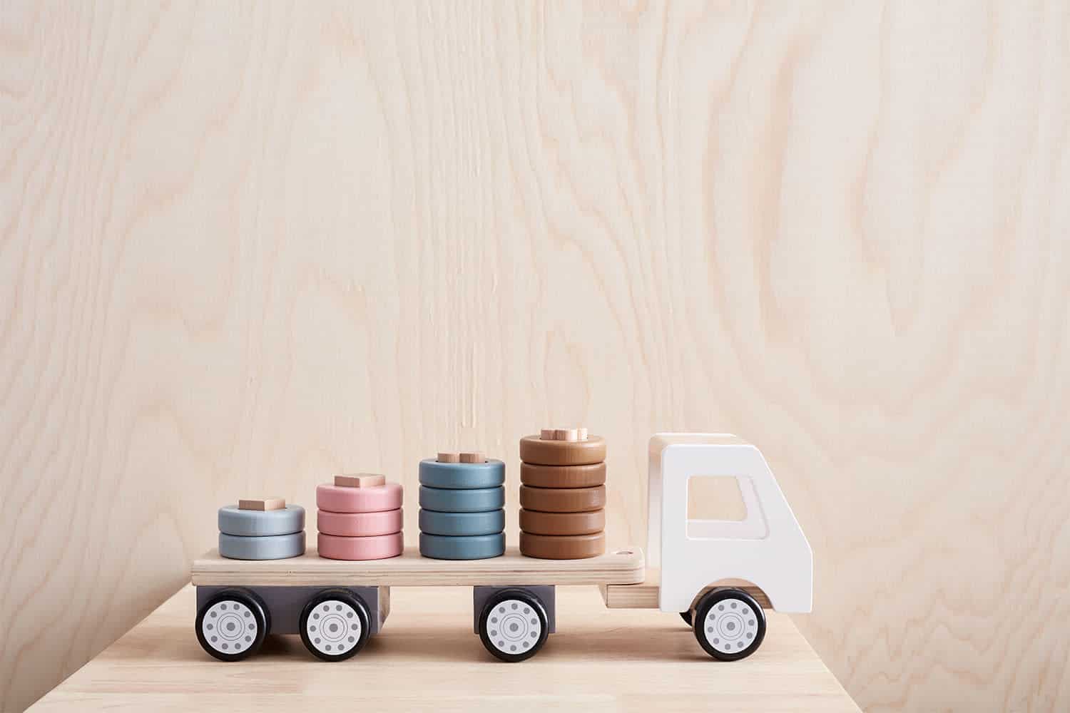 Deze eenvoudig vormgegeven wagen laat, dankzij de neutrale kleur en de uitgepuurde afwerking zonder details, veel ruimte over voor de fantasie van het kind. Een knap staaltje van “open ended” speelgoed.