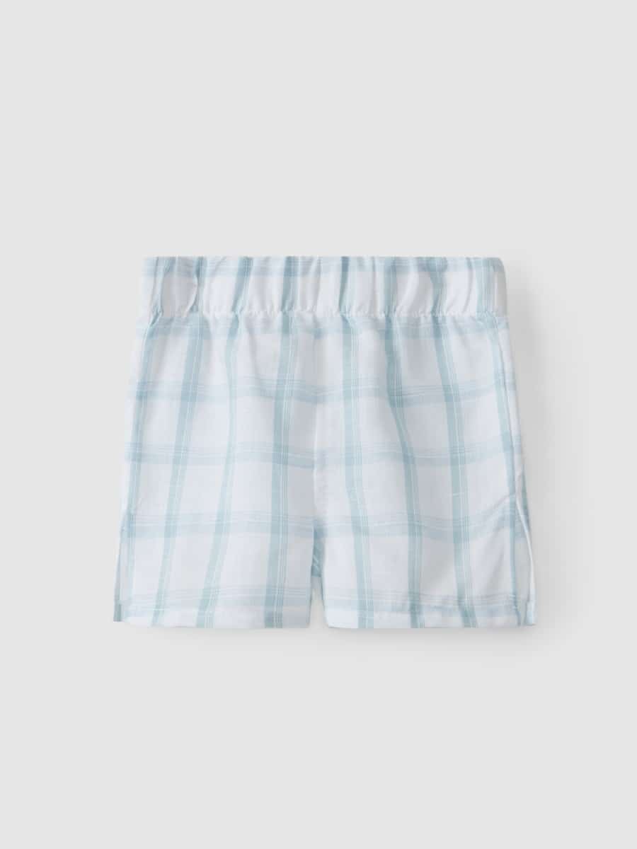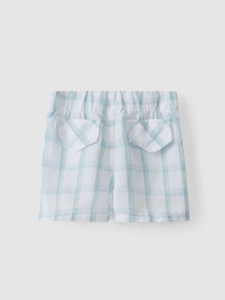 Laranjinha – Geruite Linnen Short – Waterblauw
