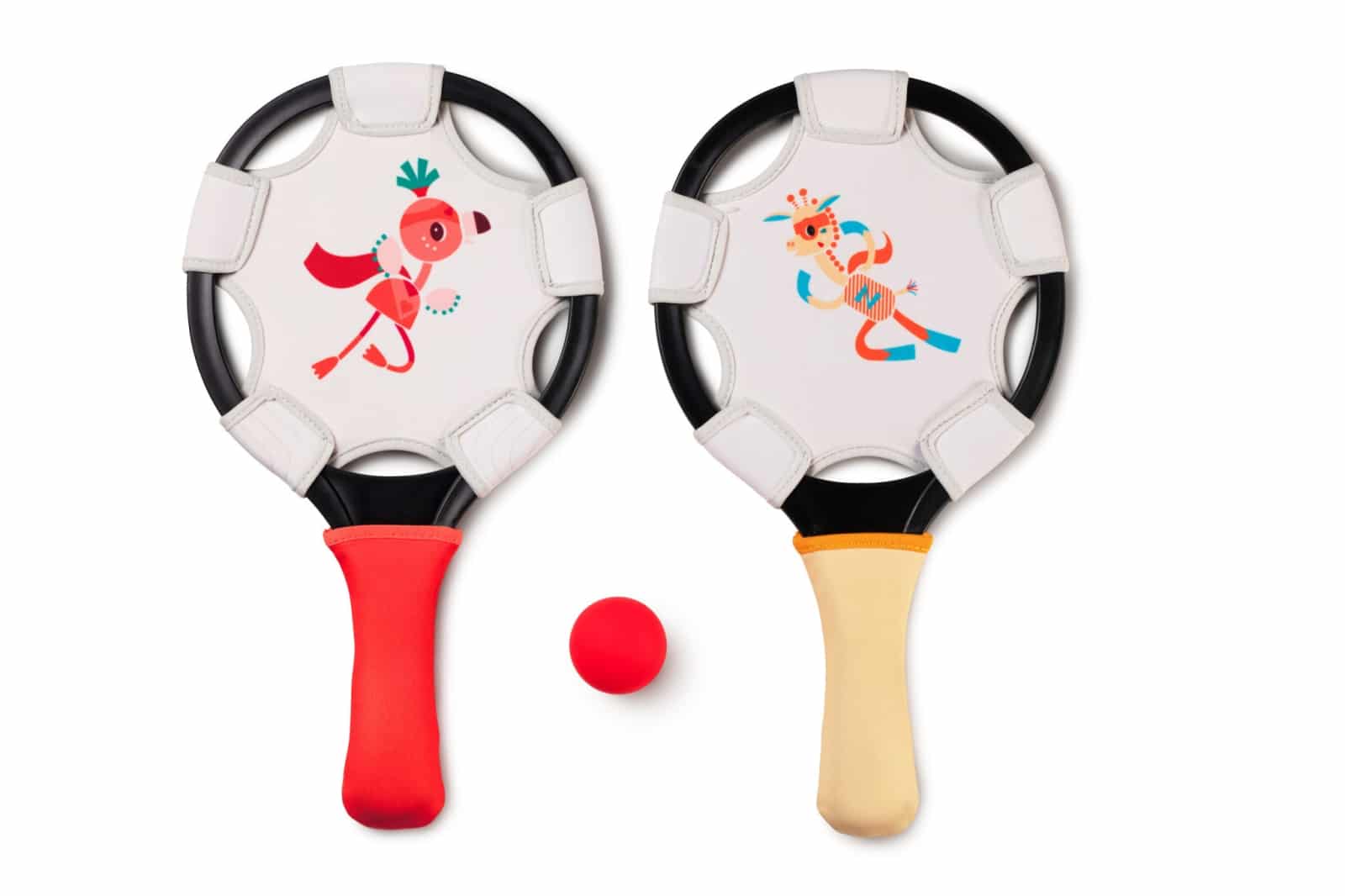 Een eerste tennisset om je balvaardigheid te beoefenen op het strand of in het park. De raketten en bal passen perfect in kleine handjes en zijn makkelijk mee te nemen dankzij het opbergzakje.