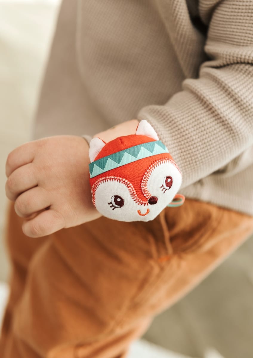 Deze onweerstaanbare rammelaar, gemaakt van organisch katoen, bind je makkelijk rond de pols of enkel van je kleine spruit. Ideaal voor de allerkleinsten die nog niet kunnen grijpen. Hij knispert en ratelt bij elke beweging, tot groot plezier van je kleine lieveling.