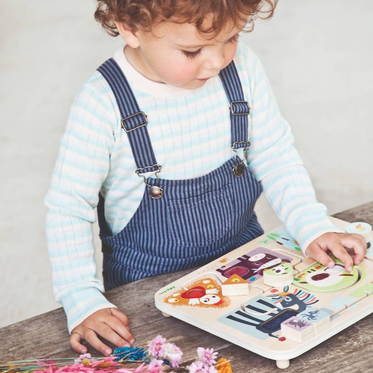 De babydiertjes op de boerderij vinden hun mama of papa niet meer terug. Kan jij hen helpen? Na een zachte knuffel van mama en papa gaan ze terug spelen. Maar opgelet, elk diertje wil graag terug naar zijn eigen plekje. Een echte hersenbreker en een uitdaging voor kleine handjes.