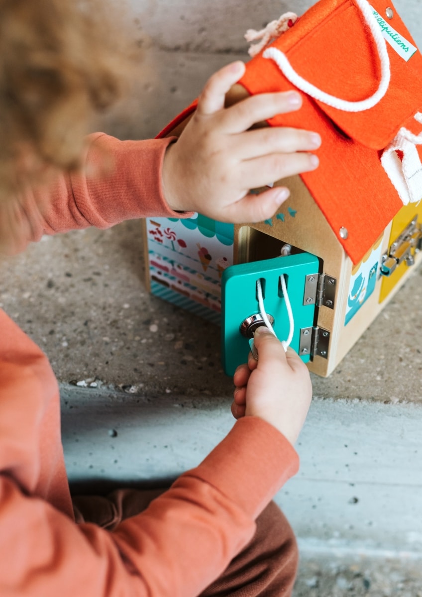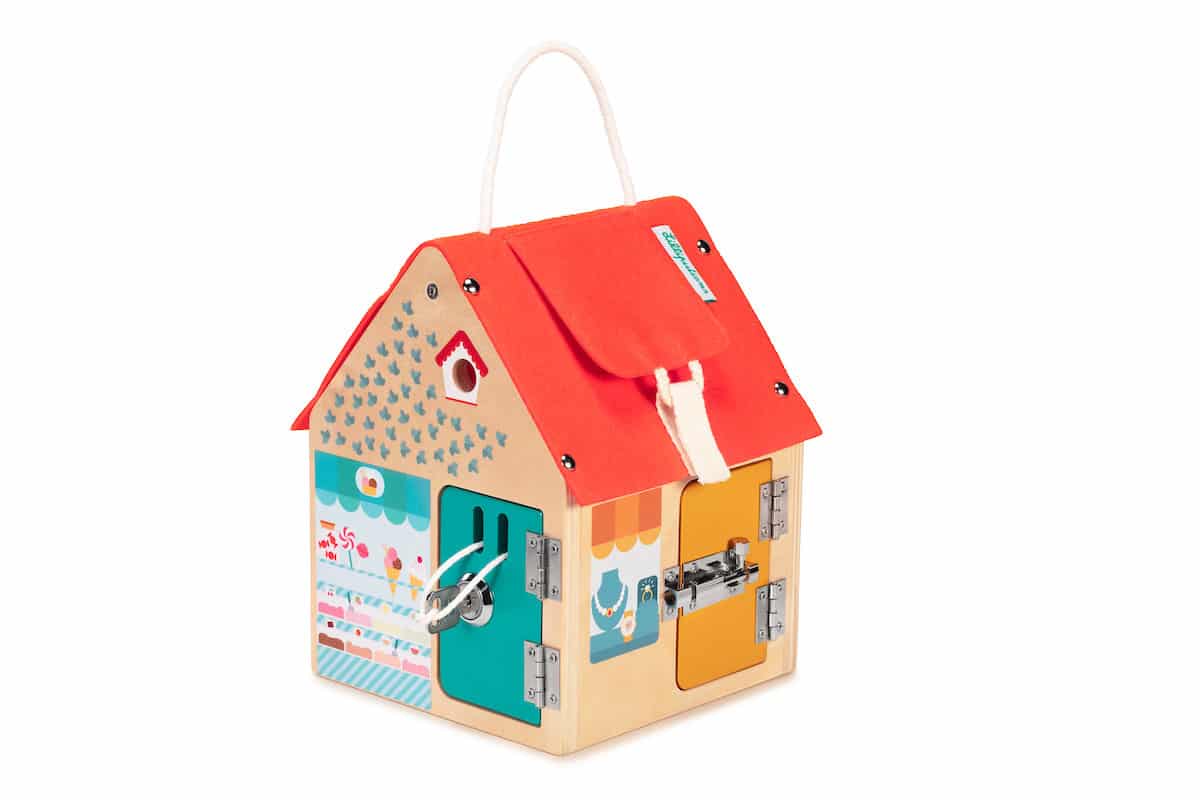 Opgelet ! Er loopt een sluwe inbreker rond. Snel kijken of alle sloten van het huisje vergrendeld zijn. Of ben jij de handlanger van de inbreker en open jij de sloten voor hem? Dit huisje laat kleuters op ludieke wijze kennismaken met verschillende sluitsystemen en stimuleert de verbeelding.